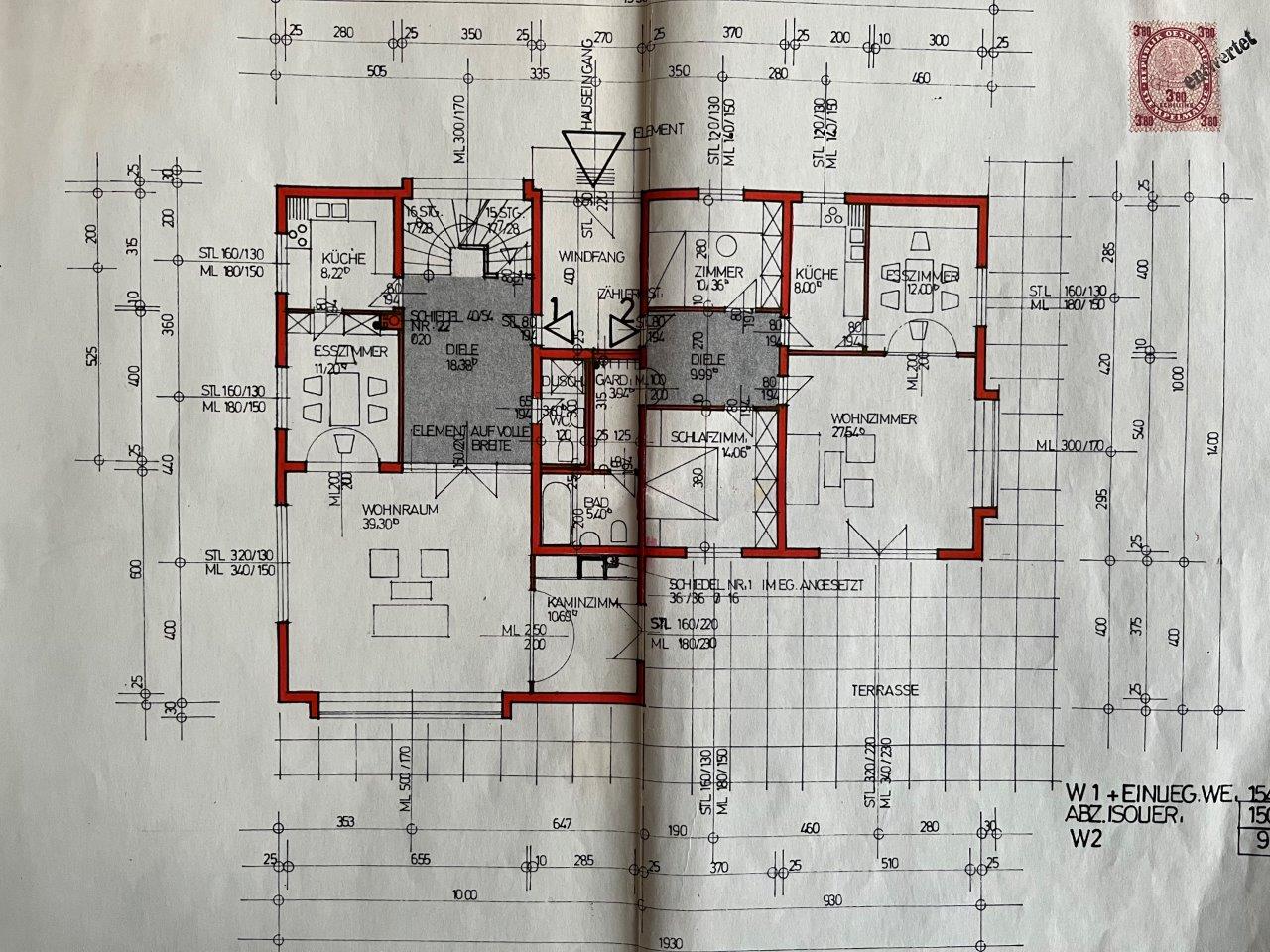 Wohnung 1: bestehend aus Windfang, Diele, WC, Kaminzimmer, Wohnraum, Esszimmer, Küche im Erdgeschoss, WC, Dusche und Schlafzimmer im Dachgeschoss mit einer circa Nutzfläche von 137m².